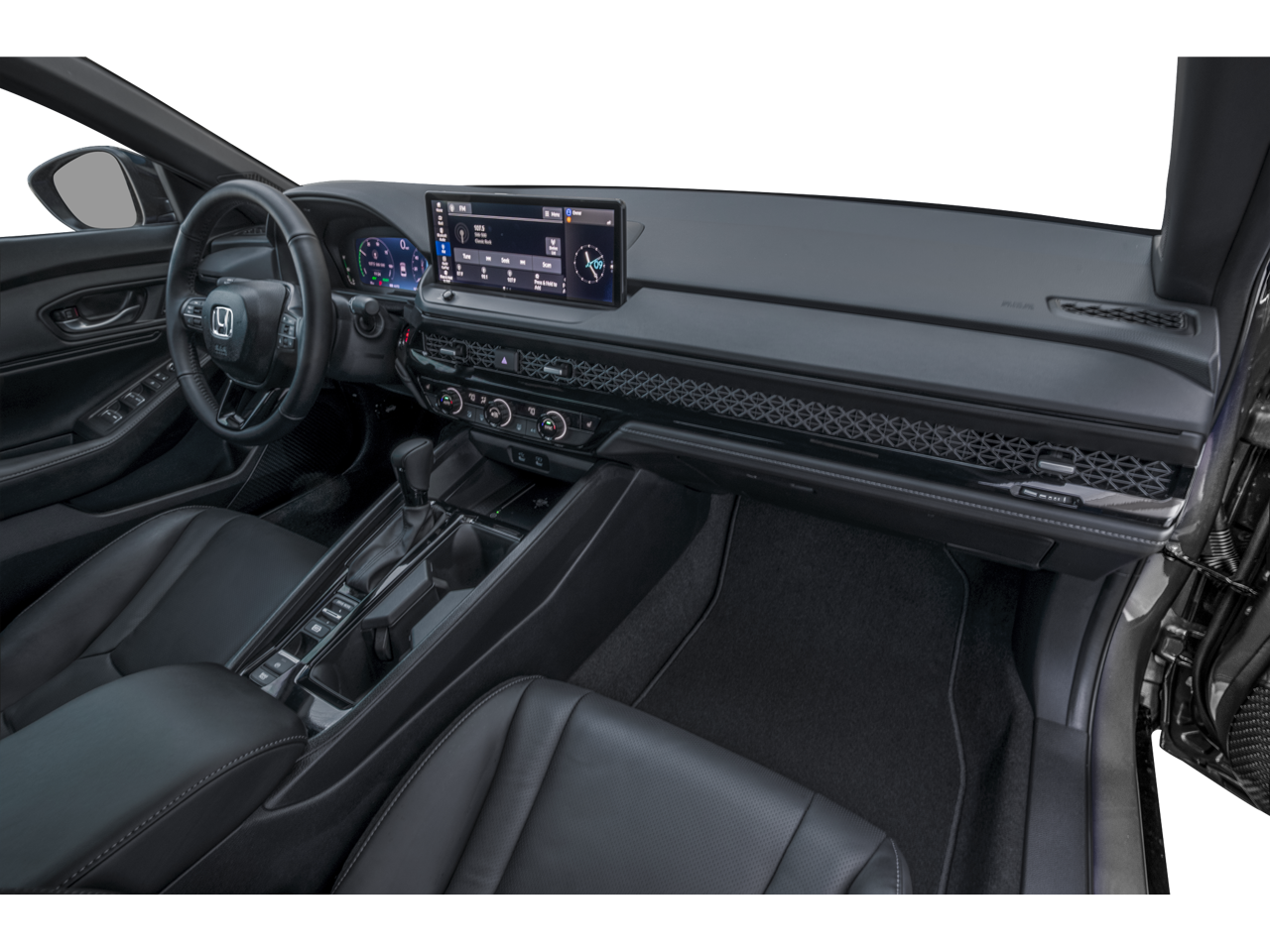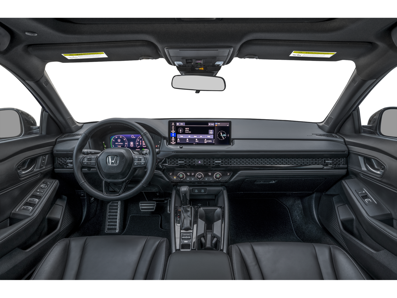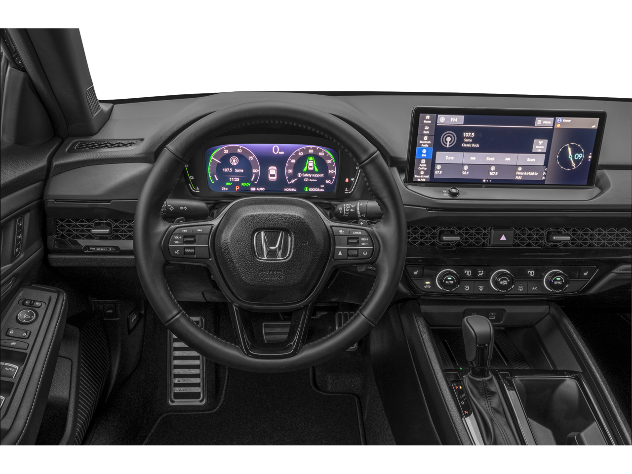 4-Wheel Disc Brakes, 8 Speakers, ABS brakes, Adaptive Cruise Control: Adaptive Cruise Control (ACC) with Low-Speed Follow, Air Conditioning, Alloy wheels, AM/FM radio, Apple CarPlay/Android Auto, Auto High-beam Headlights, Automatic temperature control, Blind Spot Information (BSI) System warning, Brake assist, Bumpers: body-color, Compass, Delay-off headlights, Driver door bin, Driver vanity mirror, Dual front impact airbags, Dual front side impact airbags, Electronic Stability Control, Emergency communication system: HondaLink, Exterior Parking Camera Rear, Four wheel independent suspension, Front anti-roll bar, Front Bucket Seats, Front Center Armrest, Front dual zone A/C, Front reading lights, Fully automatic headlights, Heated Front Bucket Seats, Heated front seats, Illuminated entry, Knee airbag, Lane departure: Lane Keeping Assist System (LKAS) active, Leather Shift Knob, Leather steering wheel, Leather-Trimmed Seat Trim, Low tire pressure warning, Memory seat, Occupant sensing airbag, Outside temperature display, Overhead airbag, Overhead console, Panic alarm, Passenger door bin, Passenger vanity mirror, Power door mirrors, Power driver seat, Power moonroof, Power passenger seat, Power steering, Power windows, Radio data system, Radio: 180-Watt Audio System, Rear anti-roll bar, Rear reading lights, Rear seat center armrest, Rear side impact airbag, Rear window defroster, Remote keyless entry, Security system, Speed control, Speed-sensing steering, Speed-Sensitive Wipers, Split folding rear seat, Spoiler, Steering wheel mounted audio controls, Telescoping steering wheel, Tilt steering wheel, Traction control, Trip computer, Variably intermittent wipers, and Wheels: 19 x 8.5J Matte Berlina Black.