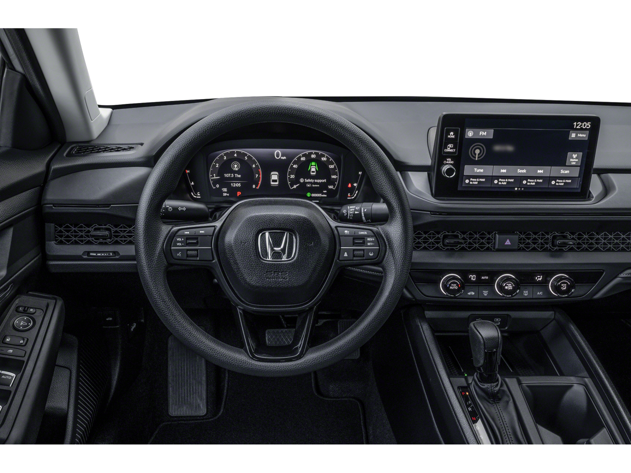 4 Speakers, 4-Wheel Disc Brakes, ABS brakes, Adaptive Cruise Control: Adaptive Cruise Control (ACC) with Low-Speed Follow, Air Conditioning, Alloy wheels, AM/FM radio, Apple CarPlay/Android Auto, Auto High-beam Headlights, Automatic temperature control, Brake assist, Bumpers: body-color, Compass, Delay-off headlights, Driver door bin, Driver vanity mirror, Dual front impact airbags, Dual front side impact airbags, Electronic Stability Control, Emergency communication system: HondaLink, Exterior Parking Camera Rear, Fabric Seat Trim, Four wheel independent suspension, Front anti-roll bar, Front Bucket Seats, Front Center Armrest, Front reading lights, Fully automatic headlights, Illuminated entry, Knee airbag, Lane departure: Lane Keeping Assist System (LKAS) active, Low tire pressure warning, Occupant sensing airbag, Outside temperature display, Overhead airbag, Overhead console, Panic alarm, Passenger door bin, Passenger vanity mirror, Power door mirrors, Power steering, Power windows, Radio data system, Radio: 160-Watt Audio System, Rear anti-roll bar, Rear reading lights, Rear seat center armrest, Rear side impact airbag, Rear window defroster, Remote keyless entry, Security system, Speed control, Speed-sensing steering, Speed-Sensitive Wipers, Steering wheel mounted audio controls, Tachometer, Telescoping steering wheel, Tilt steering wheel, Traction control, Trip computer, Variably intermittent wipers, and Wheels: 17 x 7.5J Blade Silver.