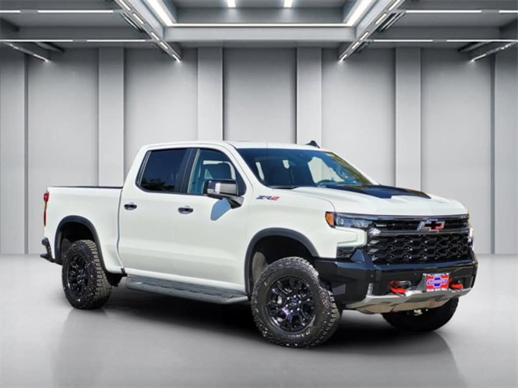 Summit White 2026 Chevrolet Silverado 1500 ZR2 4WD 10-Speed Automatic EcoTec3 6.2L V8 10-Speed Automatic, 4WD, Jet Blk/Grystn Perforated Leather.