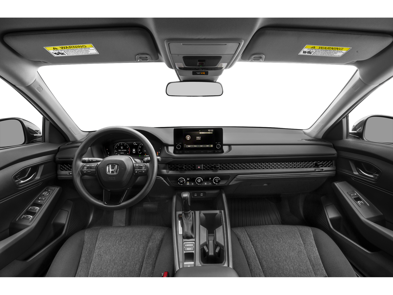 4 Speakers, 4-Wheel Disc Brakes, ABS brakes, Adaptive Cruise Control: Adaptive Cruise Control (ACC) with Low-Speed Follow, Air Conditioning, Alloy wheels, AM/FM radio, Apple CarPlay/Android Auto, Auto High-beam Headlights, Automatic temperature control, Brake assist, Bumpers: body-color, Compass, Delay-off headlights, Driver door bin, Driver vanity mirror, Dual front impact airbags, Dual front side impact airbags, Electronic Stability Control, Emergency communication system: HondaLink Assist, Exterior Parking Camera Rear, Fabric Seat Trim, Four wheel independent suspension, Front anti-roll bar, Front Bucket Seats, Front Center Armrest, Front reading lights, Fully automatic headlights, Illuminated entry, Knee airbag, Lane departure: Lane Keeping Assist System (LKAS) active, Low tire pressure warning, Occupant sensing airbag, Outside temperature display, Overhead airbag, Overhead console, Panic alarm, Passenger door bin, Passenger vanity mirror, Power door mirrors, Power steering, Power windows, Radio data system, Radio: 160-Watt AM/FM Audio System, Rear anti-roll bar, Rear reading lights, Rear seat center armrest, Rear side impact airbag, Rear window defroster, Remote keyless entry, Security system, Speed control, Speed-sensing steering, Speed-Sensitive Wipers, Steering wheel mounted audio controls, Tachometer, Telescoping steering wheel, Tilt steering wheel, Traction control, Trip computer, Variably intermittent wipers, and Wheels: 17 x 7.5 Blade Silver.