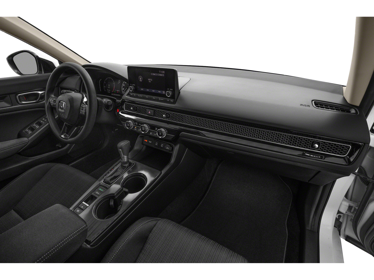 16 Wheels w/Full Covers, 4 Speakers, 4-Wheel Disc Brakes, ABS brakes, Adaptive Cruise Control: Adaptive Cruise Control (ACC) with Low-Speed Follow, Air Conditioning, AM/FM radio, Apple CarPlay/Android Auto, Auto High-beam Headlights, Automatic temperature control, Brake assist, Bumpers: body-color, Cloth Seating Surfaces, Delay-off headlights, Driver door bin, Driver vanity mirror, Dual front impact airbags, Dual front side impact airbags, Electronic Stability Control, Emergency communication system: HondaLink, Exterior Parking Camera Rear, Four wheel independent suspension, Front anti-roll bar, Front Bucket Seats, Front Center Armrest, Front reading lights, Fully automatic headlights, Illuminated entry, Knee airbag, Low tire pressure warning, Occupant sensing airbag, Outside temperature display, Overhead airbag, Panic alarm, Passenger door bin, Passenger vanity mirror, Power door mirrors, Power steering, Power windows, Radio data system, Radio: 160-Watt Audio System, Rear anti-roll bar, Rear side impact airbag, Rear window defroster, Remote keyless entry, Security system, Speed control, Speed-sensing steering, Steering wheel mounted audio controls, Tachometer, Telescoping steering wheel, Tilt steering wheel, Traction control, and Trip computer.